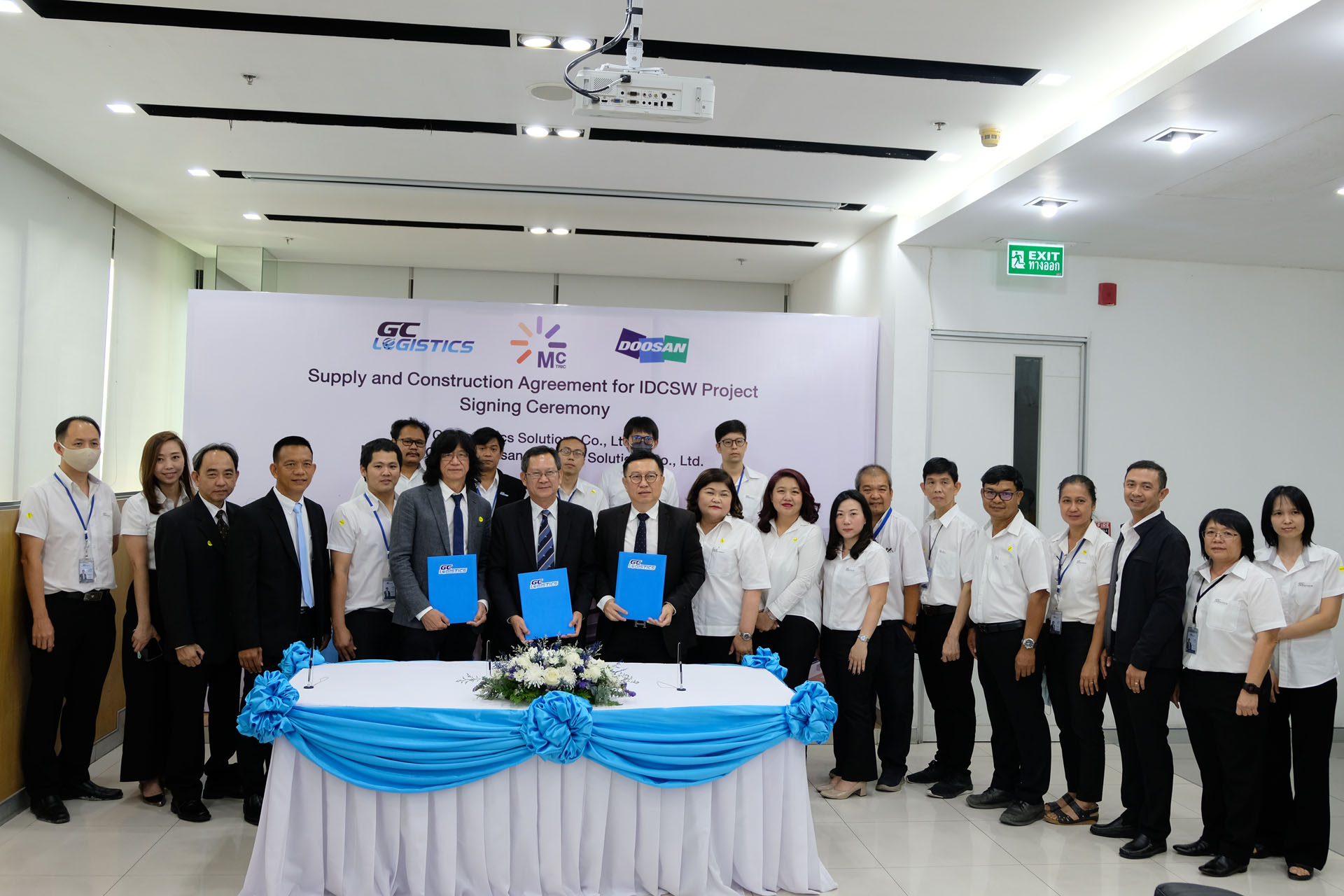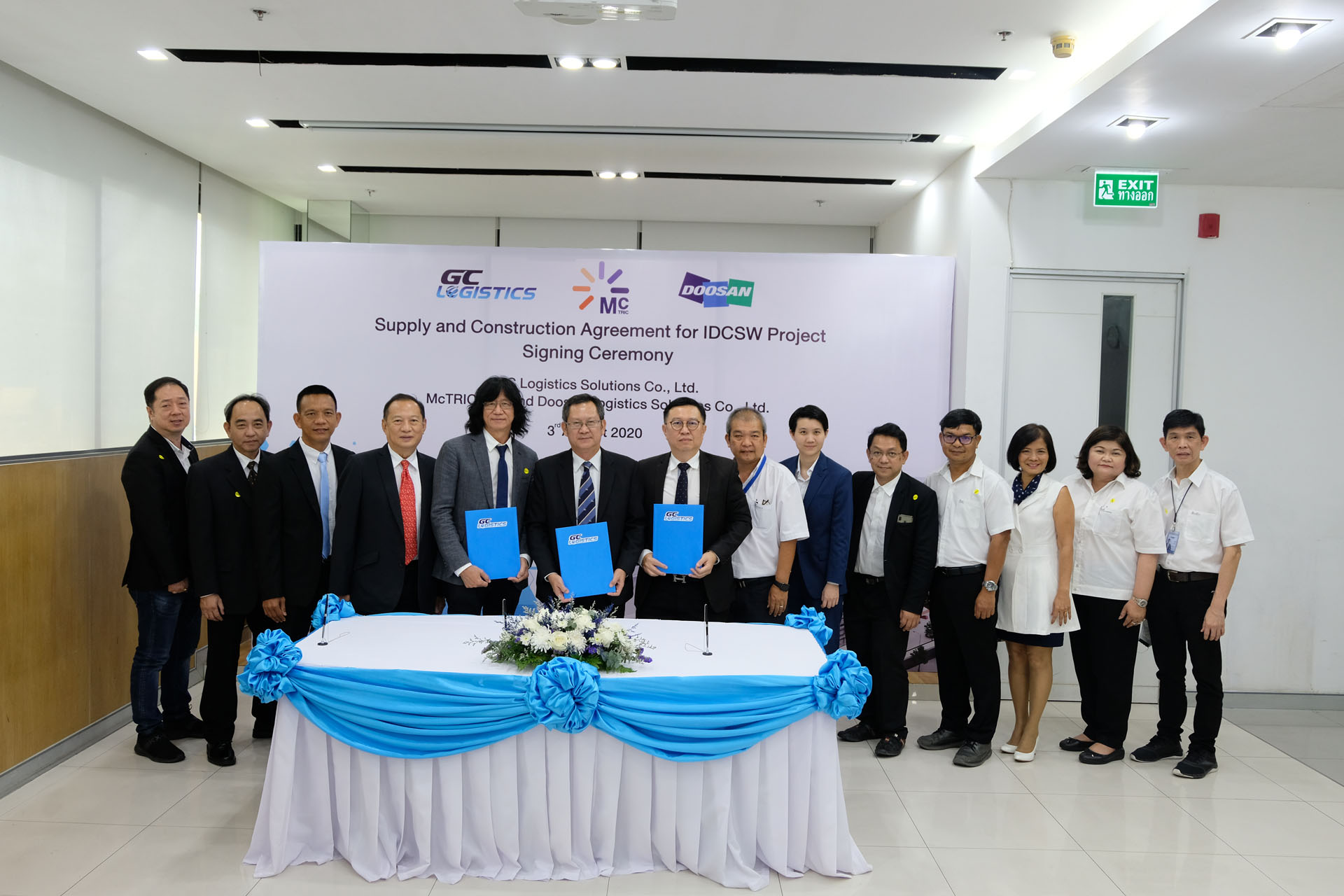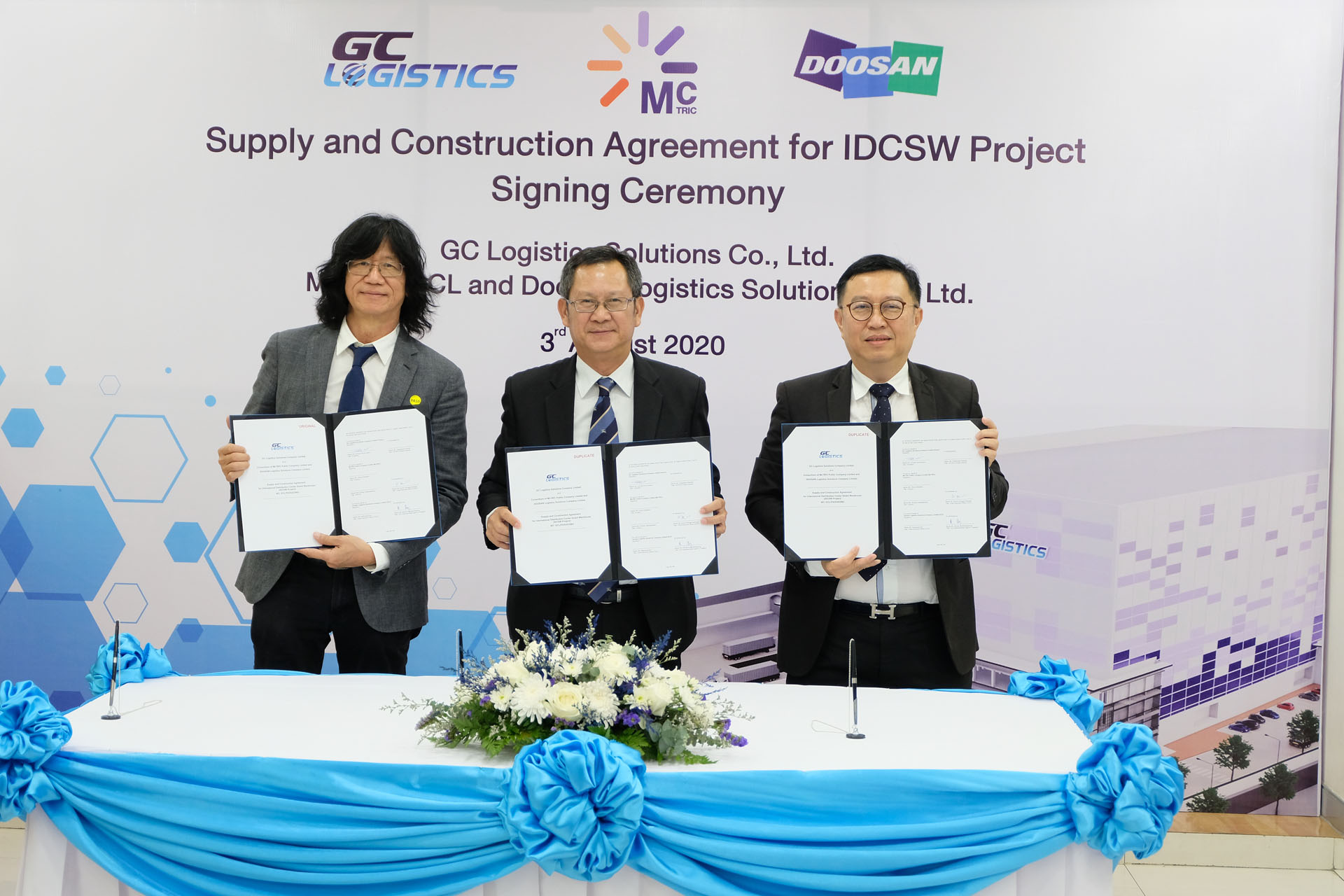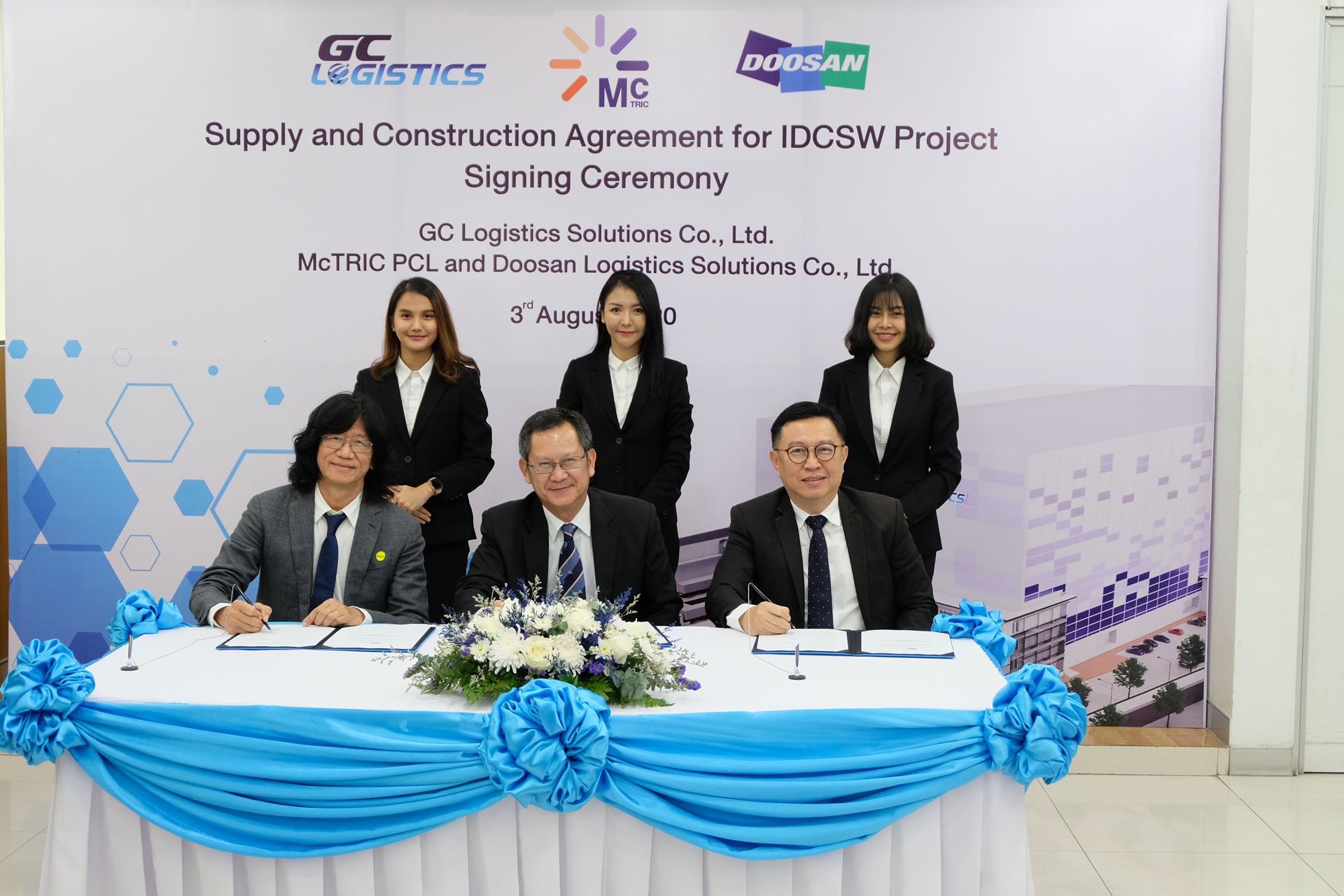 เมื่อวันที่ 3 สิงหาคม 2563 เวลา 15.00 ณ ศูนย์กระจายสิค้าระหว่างประเทศ (IDC) จ.ระยอง บริษัท จีซี โลจิสติกส์ โซลูชั่นส์ จำกัด (GCL) ทำการจัดพิธีลงนามสัญญาโครงการ International Distribution Center Smart Warehouse (IDCSW Project) ร่วมกับบริษัท แมคทริค จำกัด มหาชน (McTRIC) และบริษัท Doosan Logistics Solutions จำกัด (DLS) โดยมีคุณทวีสุข ปลื้มจิตต์ ผู้อำนวยการโครงการ IDCSW เป็นผู้กล่าวรายงานวัตถุประสงค์ความเป็นมาในการจัดงาน และได้รับเกียรติจากคุณอำนวย พรมอนันต์ กรรมการผู้จัดการบริษัท จีซี โลจิสติกส์ โซลูชั่นส์ จำกัด (GCL)เป็นประธานในพิธีพร้อมทั้งลงนามสัญญาร่วมกับ คุณโกมล วงศ์พรเพ็ญภาพ ประธานกรรมการบริหาร บริษัท แมคทริค จำกัด มหาชน (McTRIC) และคุณวิโรจน์ โชคณาโรจน์วงศ์ กรรมการผู้จัดการบริษัท ที.พี.เอส. โลจิสติกส์ แมททีเรียล แอนด์ คอนซัลแตนส์ (T.P.S.) ในฐานะผู้แทนบริษัท Doosan Logistics Solutions จำกัด (DLS) โดยมีวัตถุประสงค์เพื่อร่วมลงนามสัญญาก่อสร้างคลังสินค้า IDCSW ที่จะนำเทคโนโลยีระบบอัตโนมัติมาช่วยลดต้นทุน Logistics ในภาพรวมเพิ่มความสามารถในการจัดเก็บเสินค้าและเพิ่มประสิทธิภาพการบริหารคลังสินค้าให้แก่บริษัท GCL
